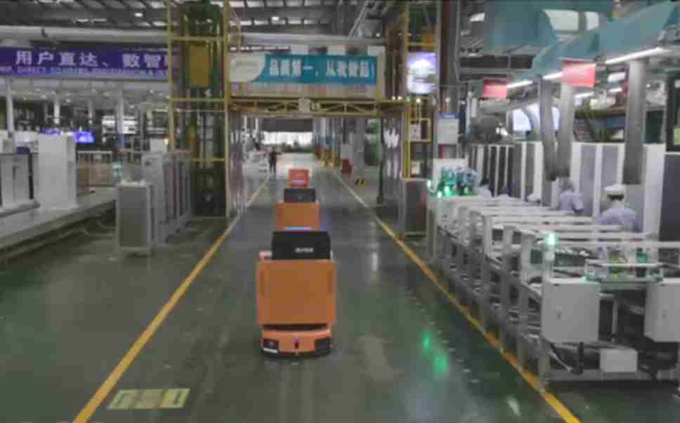 为车载冰箱物流配送打造的智能解决方案,,,,包含产中物流通过潜伏举升AMR搬运至线边,,,产后成品物流智能仓储,,流程包含产中物流智能齐套入库,,,线边安灯叫料AMR智能配送至线边,,,成品入库、、、出库,,,通过无人堆高车机器人,,,智能仓储管理替代人工作业管理,,,,实现更高存储、、、、更高效率、、、、更具柔性化的解决方案。。。